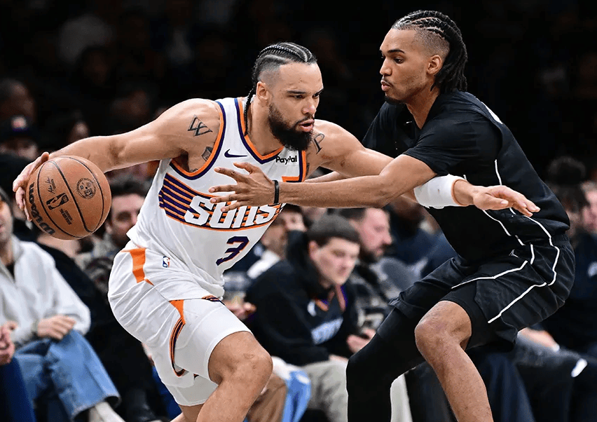 太阳在今天的比赛中对阵篮网,这场比赛太阳虽然是早早建立领先,甚至在比赛中太阳更是一度领先到了20分,但是篮网在这场比赛中也打得坚韧多次追近比分不说,到了第四节比赛的时候篮网更是一度追到4分,只不过很快狄龙、阿伦等人能够给予回应,最终太阳还是有惊无险的赢下比赛胜利,全场比赛结束布克得到了24分4篮板4助攻的数据,狄龙得到了27分5篮板2助攻的数据。这场比赛后篮网遭遇2连败排在东部第十三的位置,至于太阳赢球后虽然还排在西部第七的位置,但是太阳也威胁着湖人,毕竟现在太阳跟湖人之间没有胜场差,所以太阳也随时有机会反超湖人。
